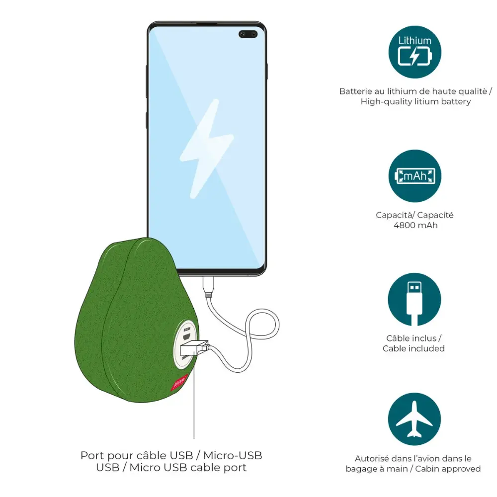 ¡Olvídate del desespero por buscar un tomacorriente! Esta batería tiene una capacidad de 4800 mAh y se carga completamente en unas 4 horas. Incluye un cable de carga USB/Micro USB y es compatible con la mayoría de los dispositivos. Además, cuenta con una batería integrada de litio y protección contra sobrecargas para mayor seguridad.