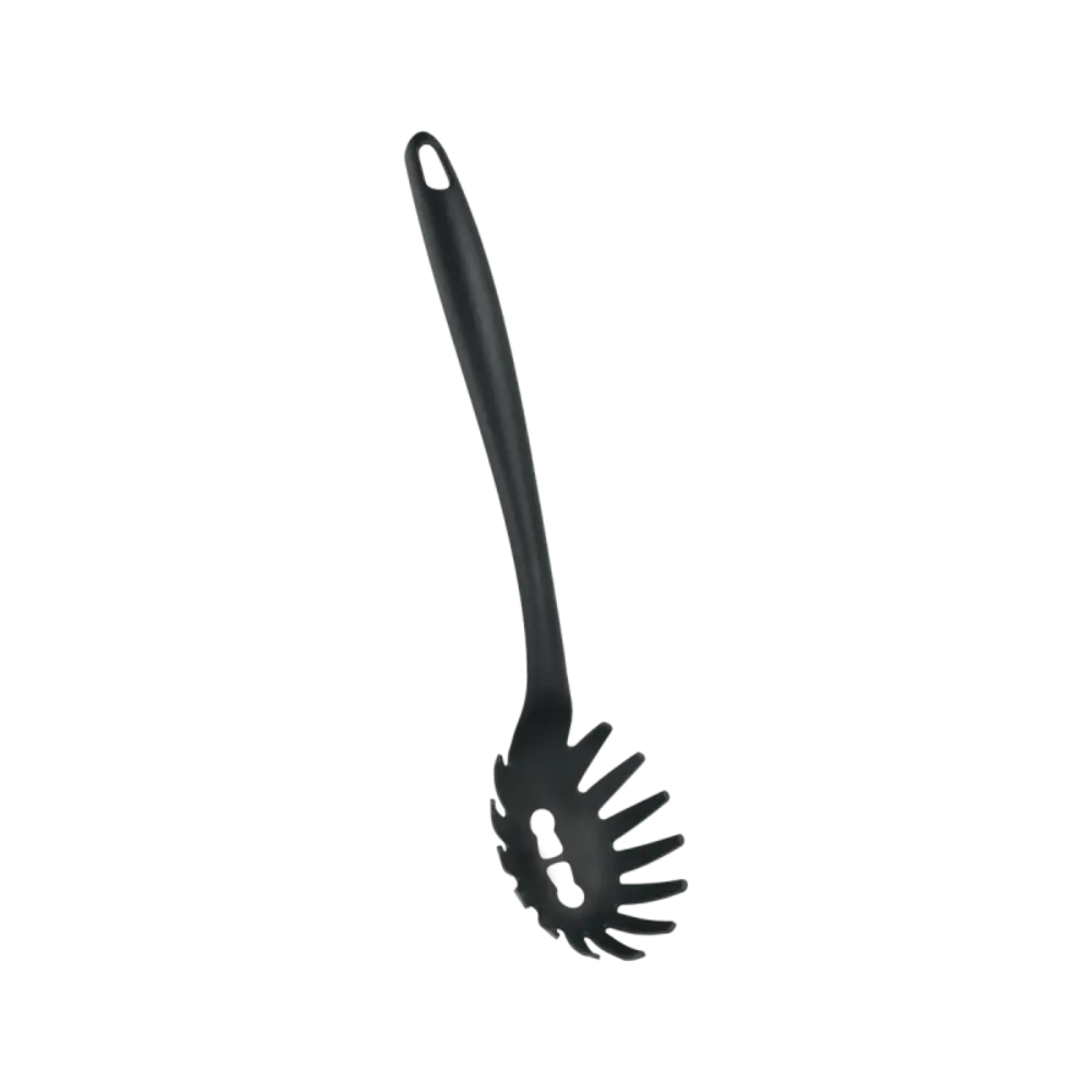 Su diseño especializado con dientes en el borde permite recoger y servir espaguetis con facilidad, evitando que se derramen o se enreden. Fabricado con materiales resistentes, ofrece un agarre cómodo y seguro, permitiendo un control total al servir. Ideal para usar en la cocina diaria, es una adición esencial para quienes disfrutan de preparar platos de pasta de forma precisa y eficiente.