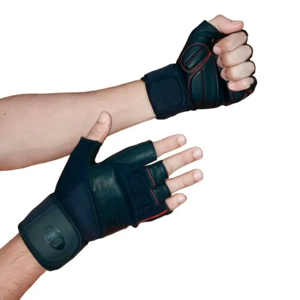 Con una construcción combinada de cuero sintético texturizado y tejido elástico, estos guantes presentan un cierre de velcro que envuelve la muñeca, proporcionando un soporte adicional y un ajuste seguro. Su acolchado de espuma en la palma y las costuras a contraste no solo añaden durabilidad, sino que también mejoran el agarre y el confort.