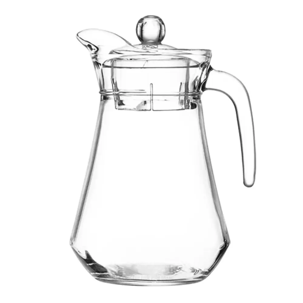 Con un diseño estilizado, esta jarra presenta un cuerpo de base ancha y un asa cómoda para un agarre seguro. Su material de vidrio transparente incorpora una tapa con un pomo para levantarla fácilmente, mientras que su pico vertedor la convierte en un accesorio ideal para servir bebidas, perfecta para mantener la frescura en la mesa.