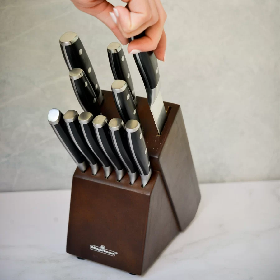 ¿Quieres los mejores compañeros de cocina? Nuestro juego de 12 piezas Classic será tu cómplice ideal para todos los días, su diversa composición te permitirá cortar todo tipo de alimentos. Su hoja de una sola pieza elaborada en acero inoxidable forjado alto en carbono te garantiza una mayor resistencia y durabilidad. Los cuchillos poseen una alta dureza HRC 55+/-2 que conserva el filo por más tiempo. Sus mangos son ergonómicos para una mayor comodidad y mejor manipulación.