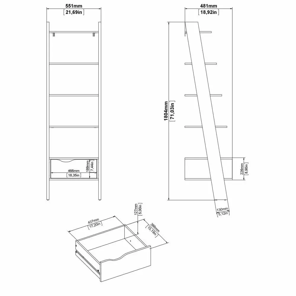 Librero Oslo 1 cajon 55,1 x 48,1 x 180,4 cm