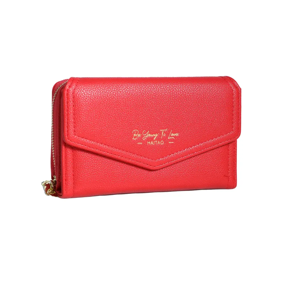 Con un diseño rectangular y compacto, este monedero presenta una textura granulada y un cierre de solapa frontal con botón a presión. Incorpora un cierre de cremallera en uno de los laterales, ofreciendo múltiples compartimentos internos para organizar billetes y tarjetas de forma segura, mientras que su tamaño práctico lo convierte en un accesorio ideal para llevar en el bolso.