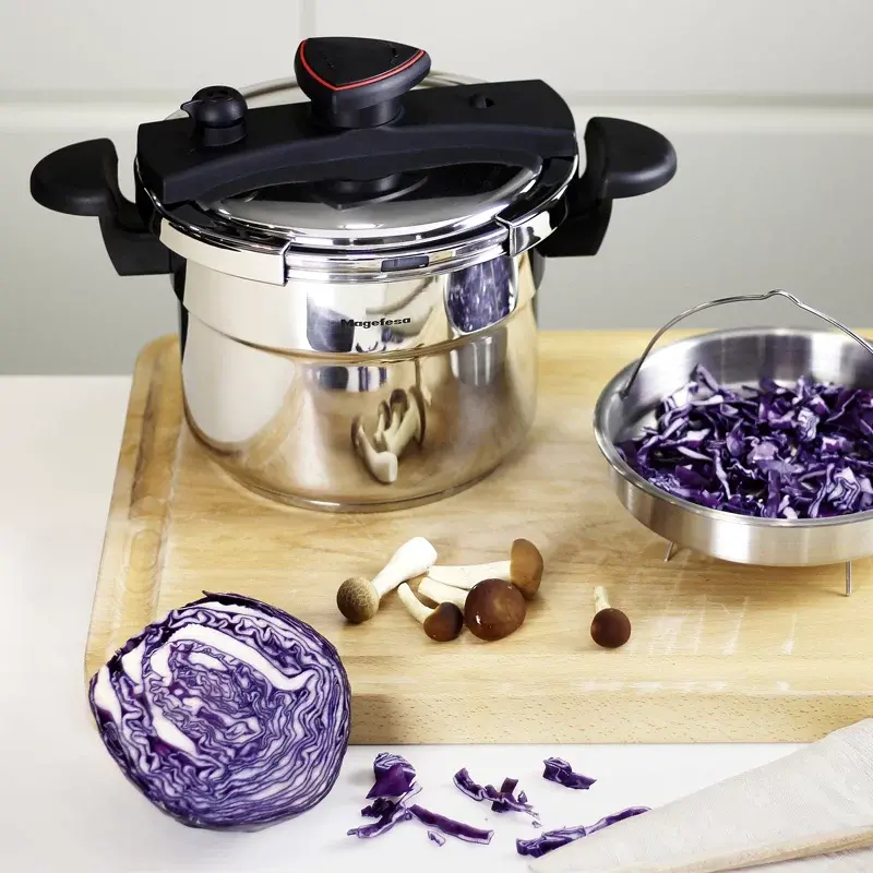 Fabricada con acero inoxidable de alta calidad, ofrece una excelente resistencia y durabilidad, garantizando una larga vida útil. Su diseño incluye un sistema de seguridad que permite controlar la presión de forma fácil y segura, mientras que su capacidad amplia es perfecta para preparar desde guisos y sopas hasta carnes y legumbres.