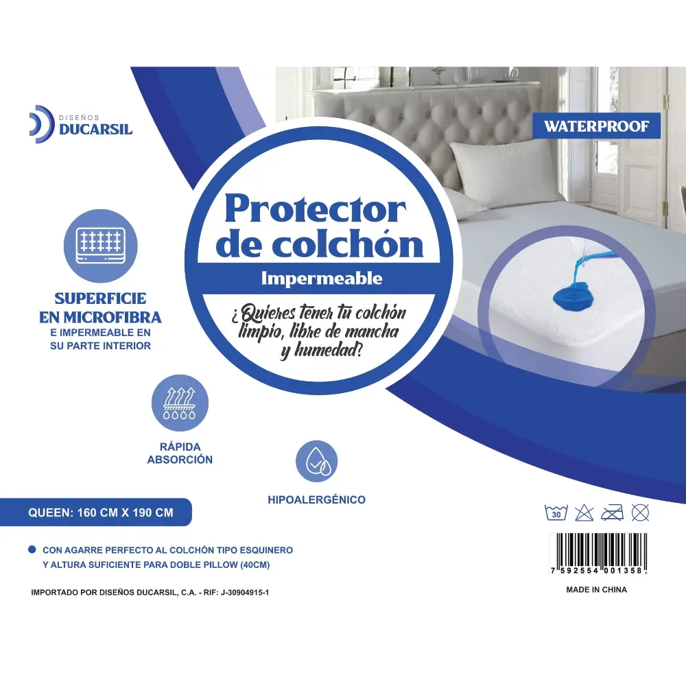 Protector para colchón impermeable Queen 160×190 cm