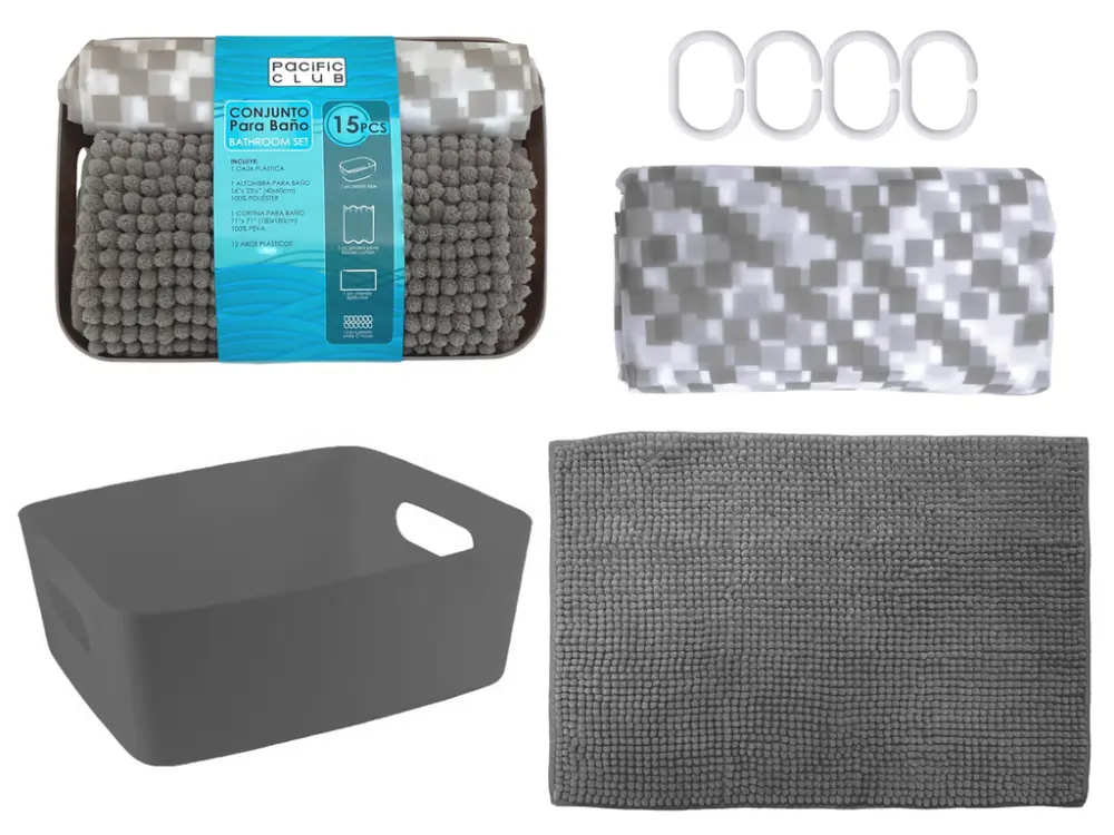 Set de alfombra y cortina para ducha